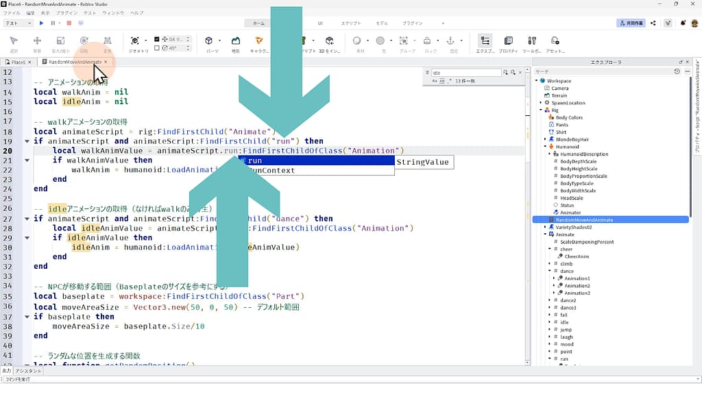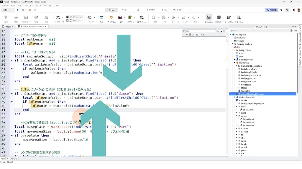 ※今回はRigの下に(子インスタンスとして)、RandomMoveAndAnimateというスクリプトが生成されましたが、依頼文の内容によってServerScriptServiceの下などの別の適切な場所に生成される場合もあります。