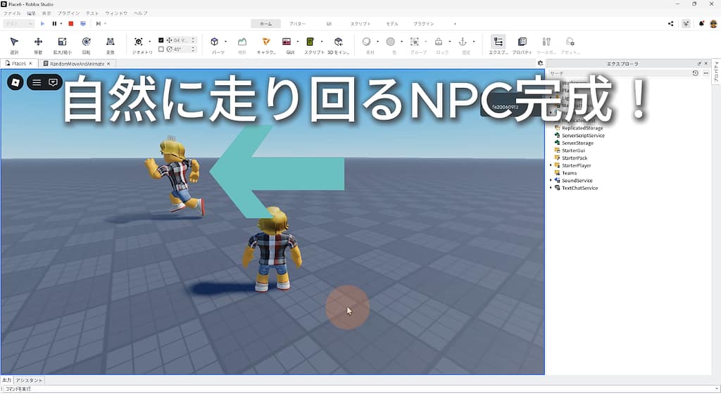 Roblox Studio の最新UIを使って、NPC(キャラクター)が自然に歩き回る「歩行AI」を作る方法を丁寧に解説します。