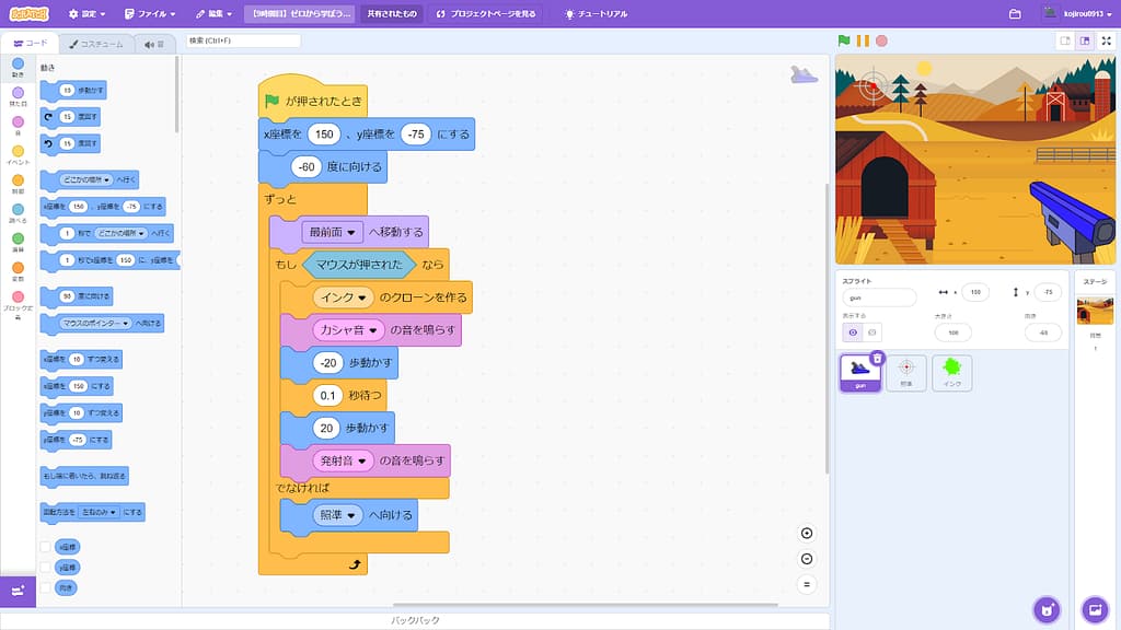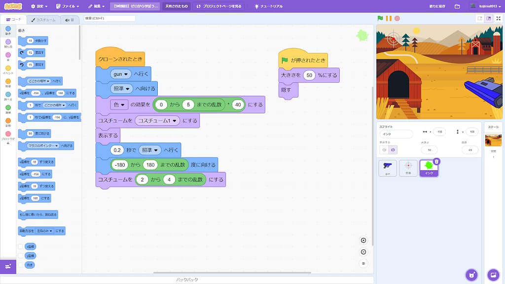 ゼロから学ぼうScratch(スクラッチ)プログラミング9時間目をアップ!FPSゲームを作りながら、クローンや乱数ブロックの使い方を学びます。