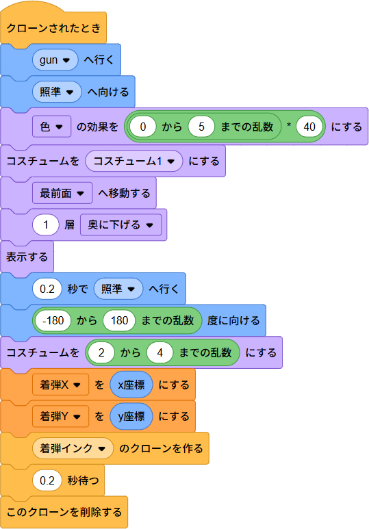 今回は、FPSゲームを作りながら、着弾用のクローンを使った正確な当たり判定のやり方、カスタムブロックを使ったプログラムの整理を学びます。