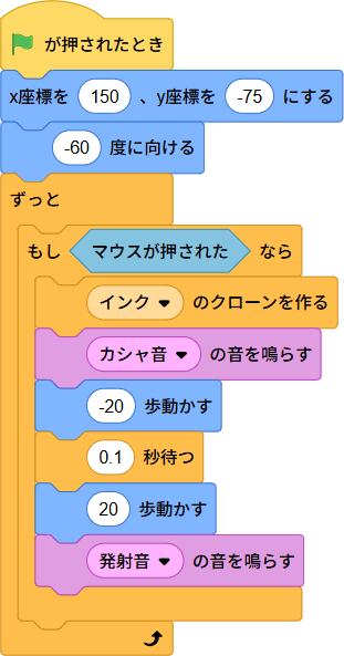 マウスクリック(画面タップ)でインク発射できます。
