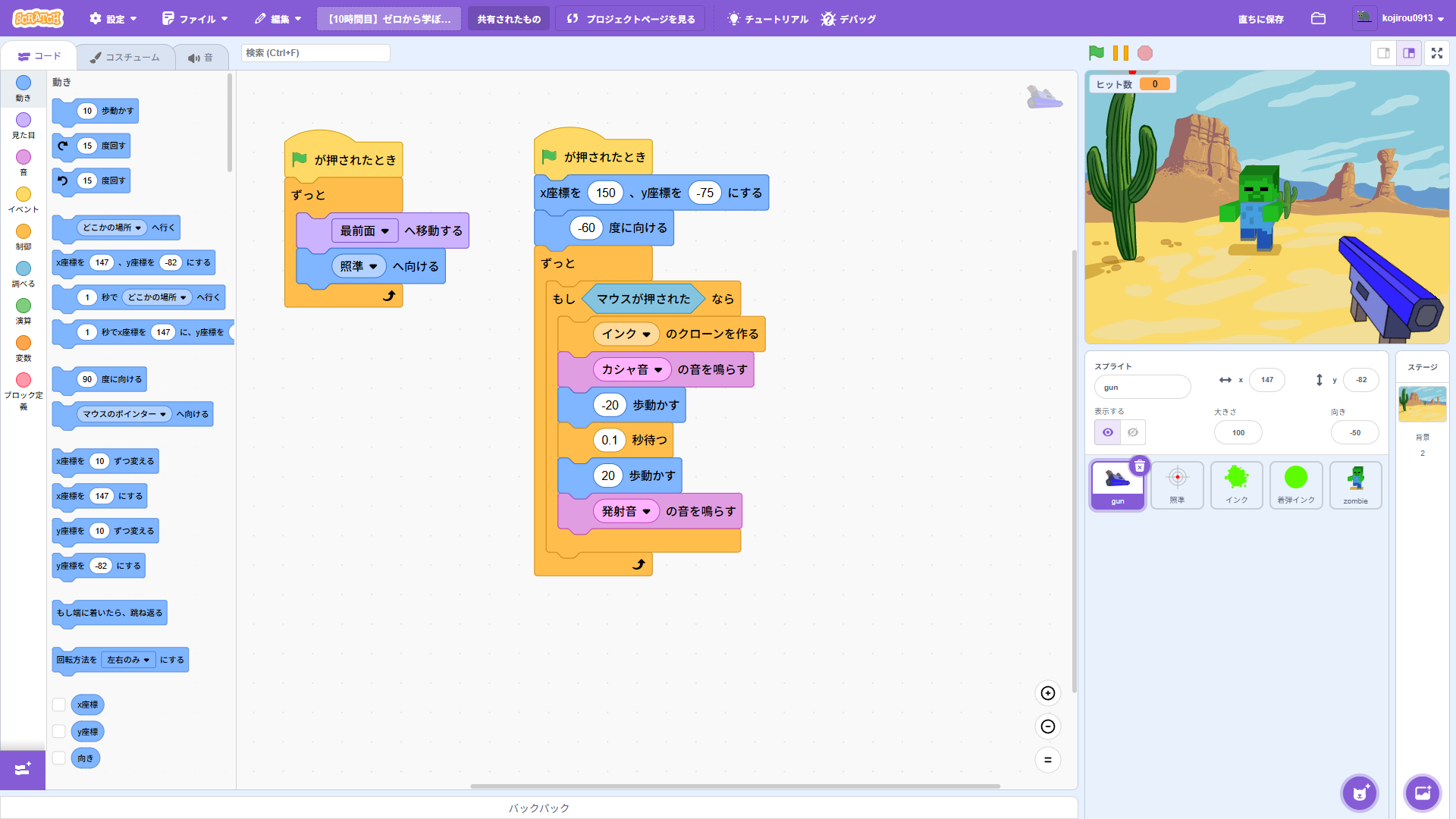 【10時間目】ゼロから学ぼうScratch:FPSゲームを作ろう!2回目 / 全3回