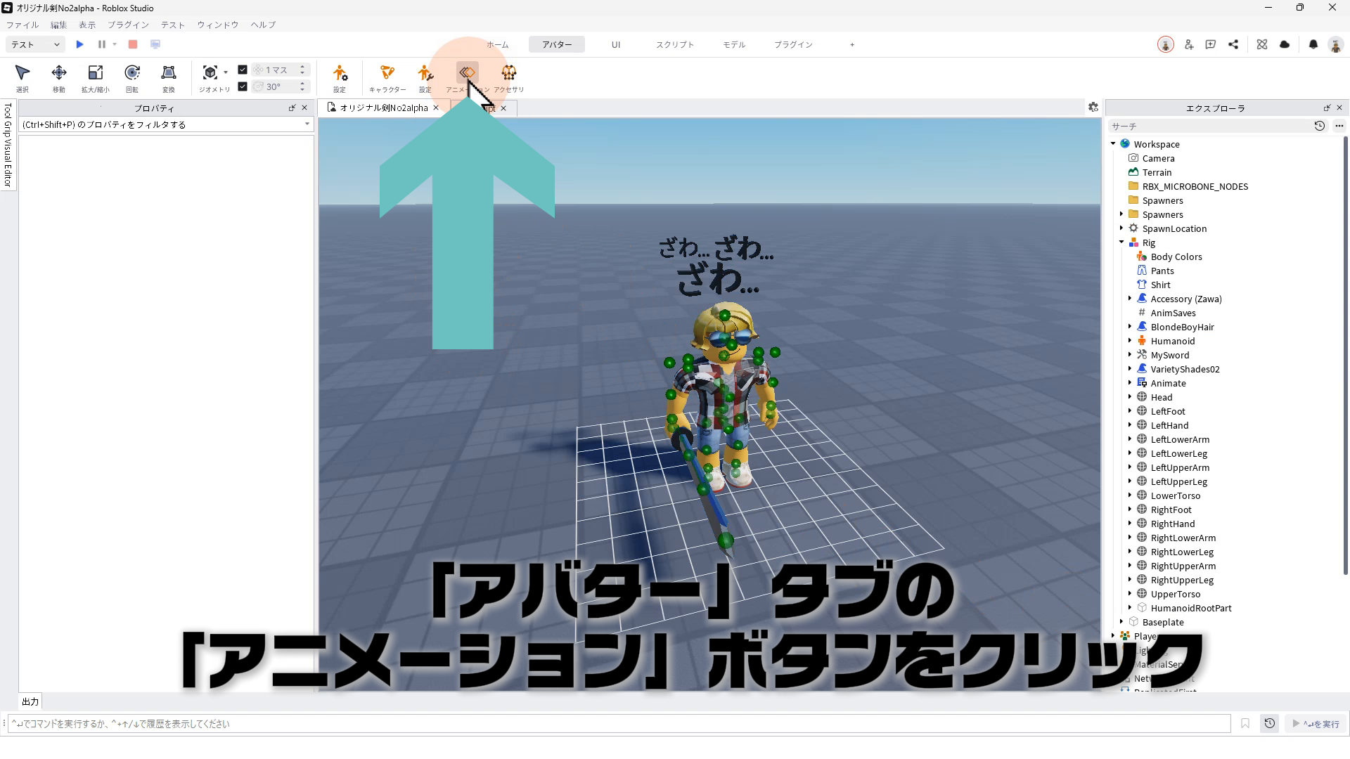 「アバター」タブの「アニメーション」ボタンをクリック