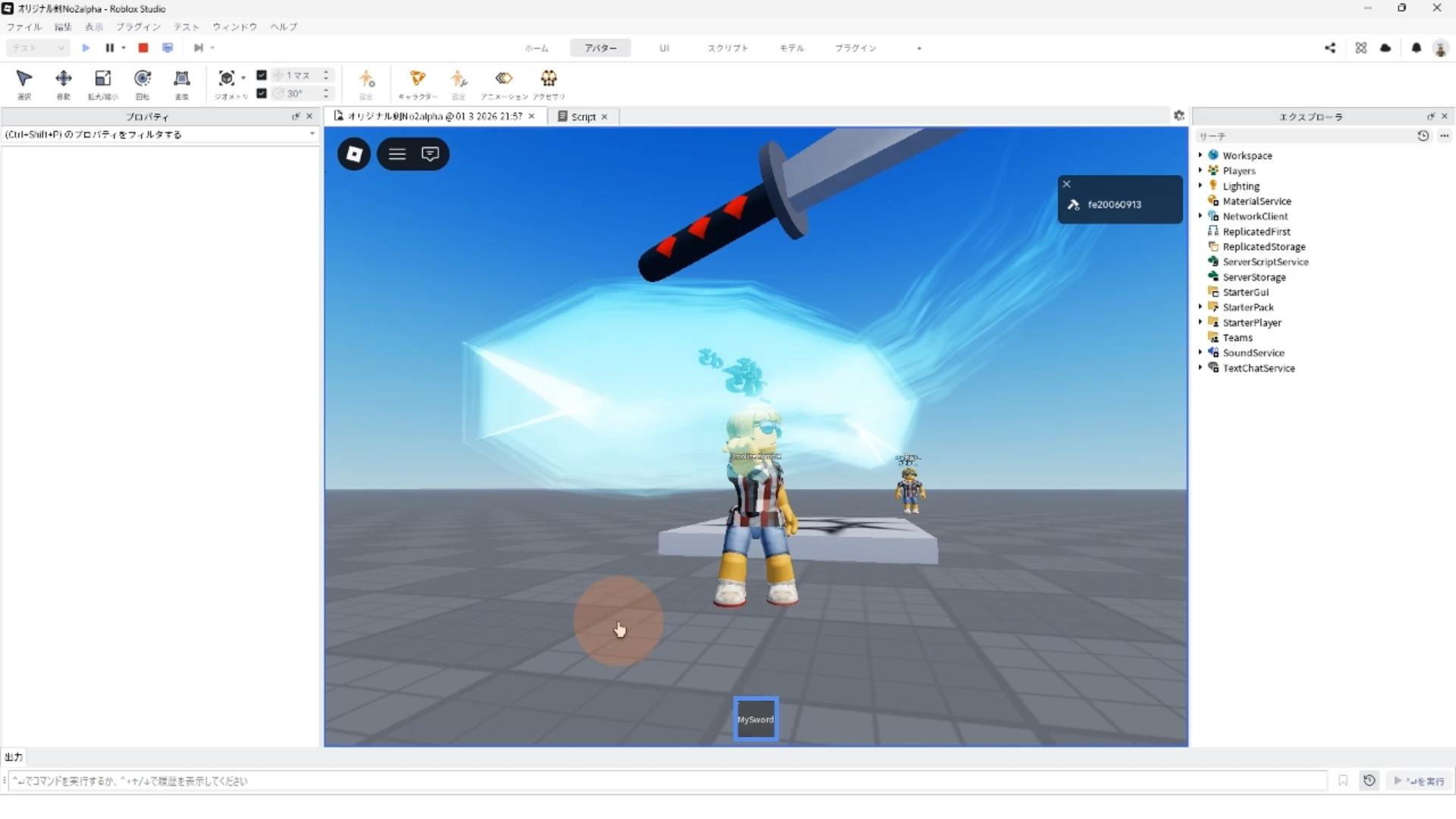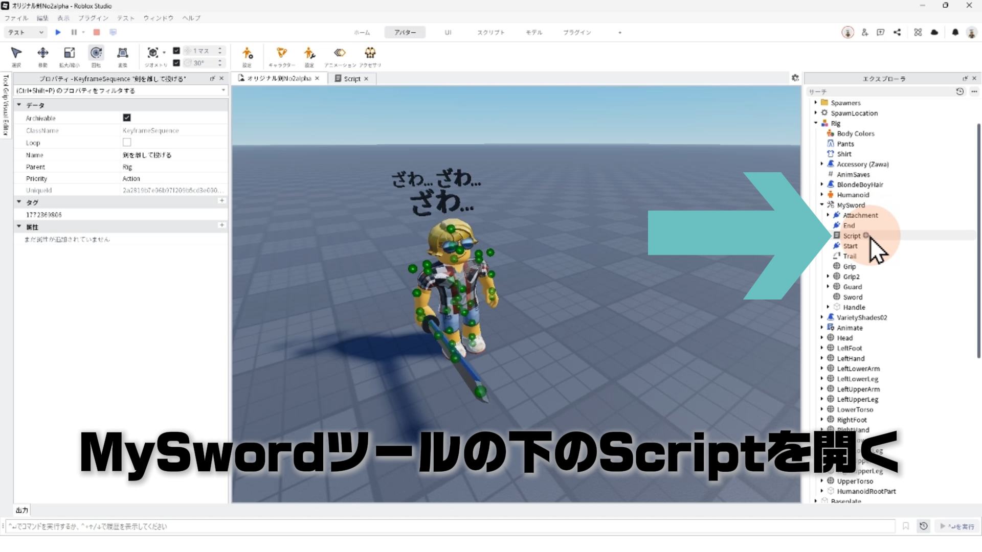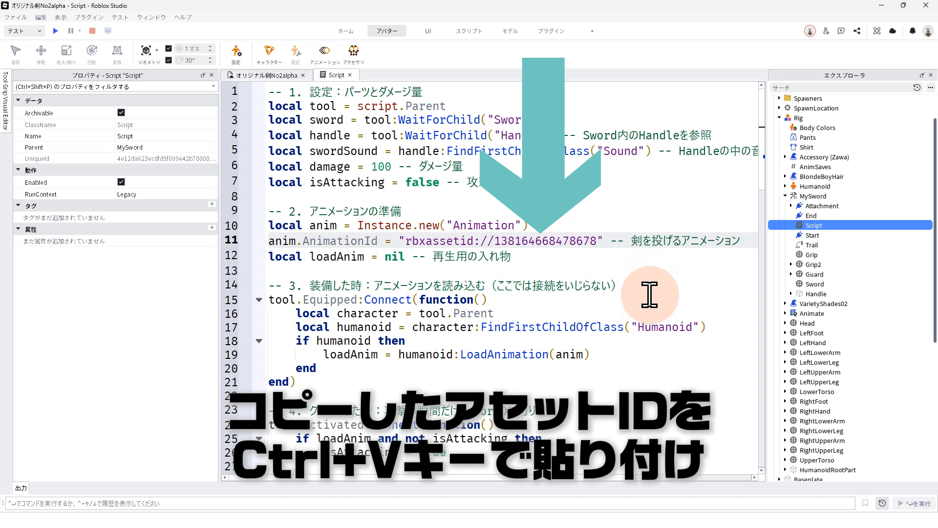 オリジナル剣を作ろうパート2で解説した、4.クリックした時のスクリプトを変更する