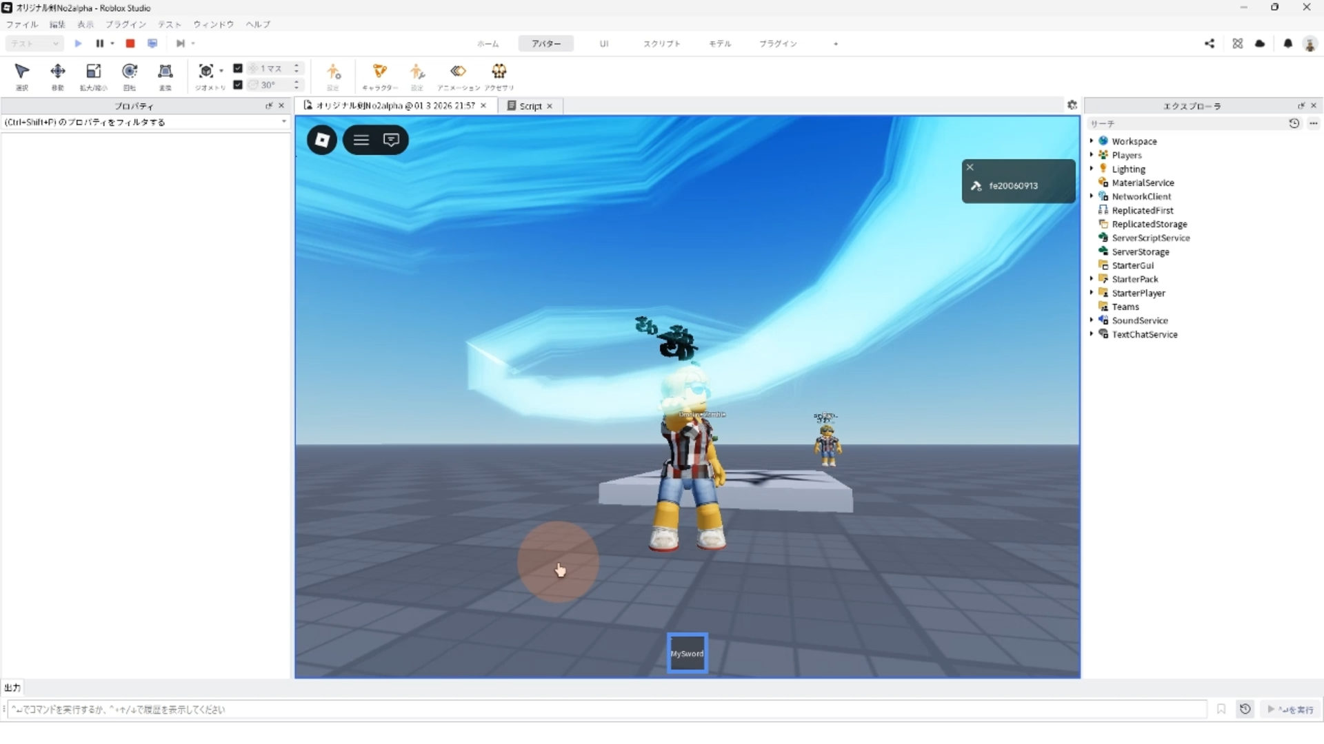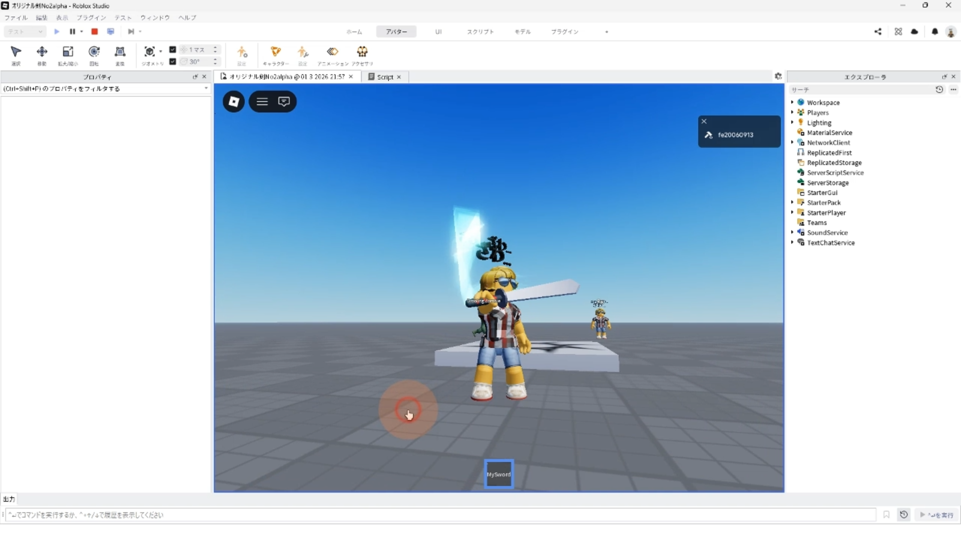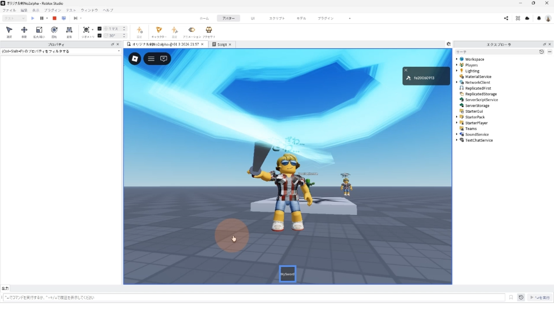 オリジナル剣を作ろうパート2で解説した、4.クリックした時のスクリプトを変更する