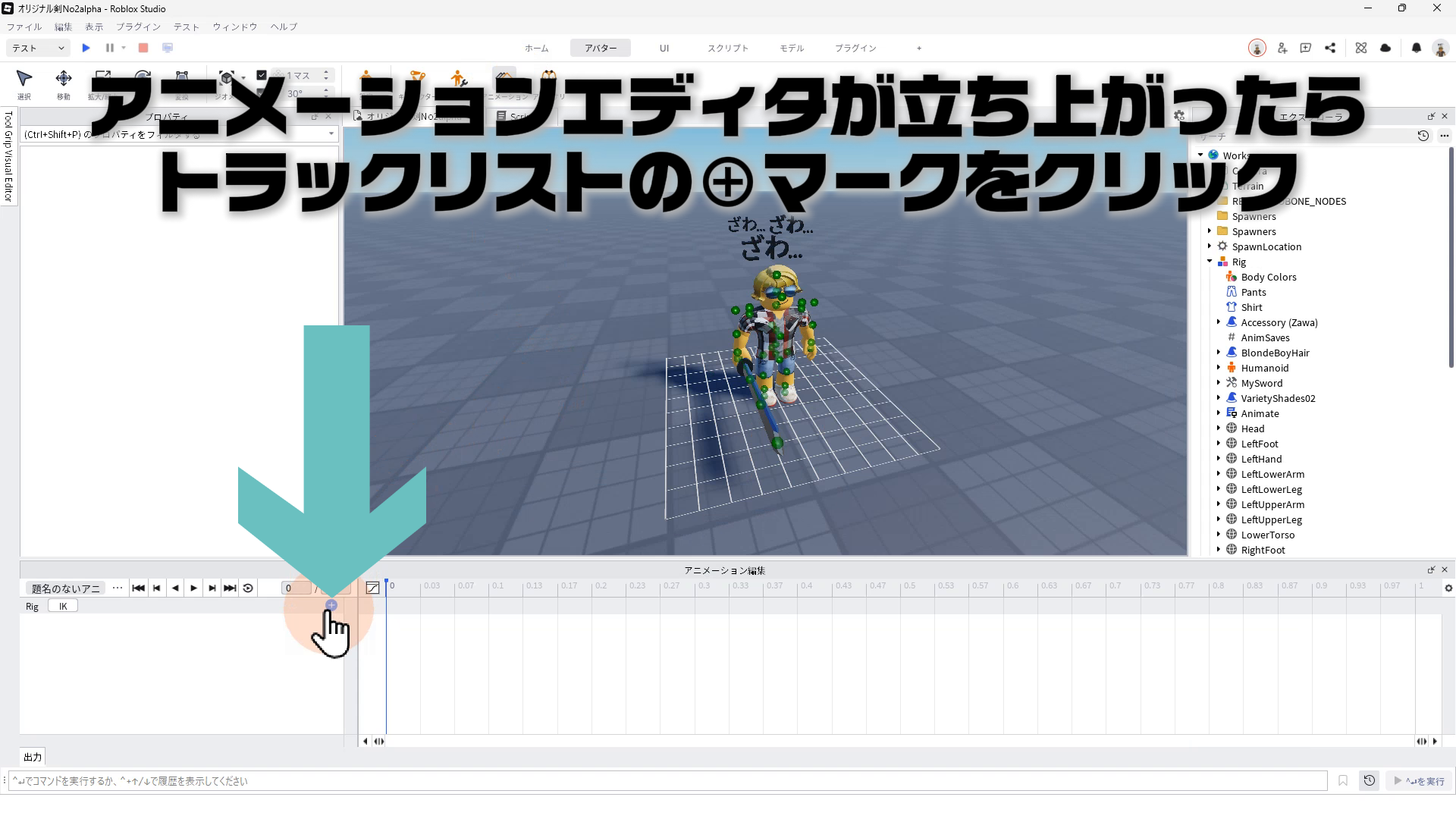 アニメーションエディターが立ち上がったらトラックリストの⊕マークをクリック