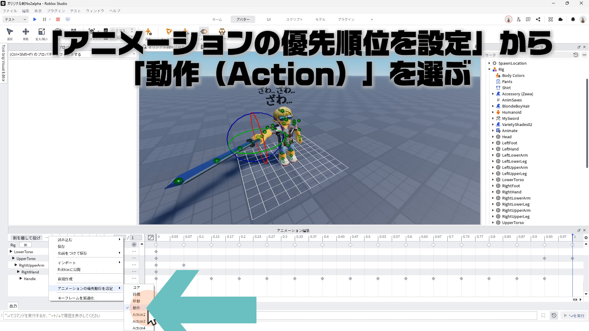「アニメーションの優先順位を設定」ー「動作(Action)」を選ぶ