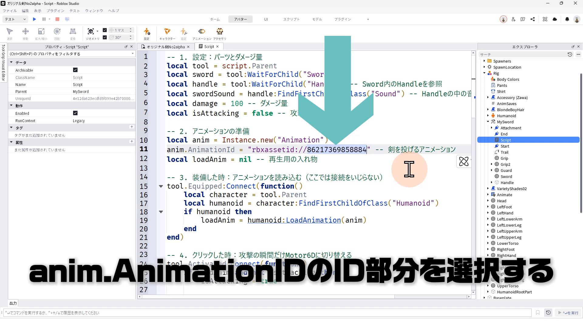 Scriptのanim.AnimationIDのID部分を選択する