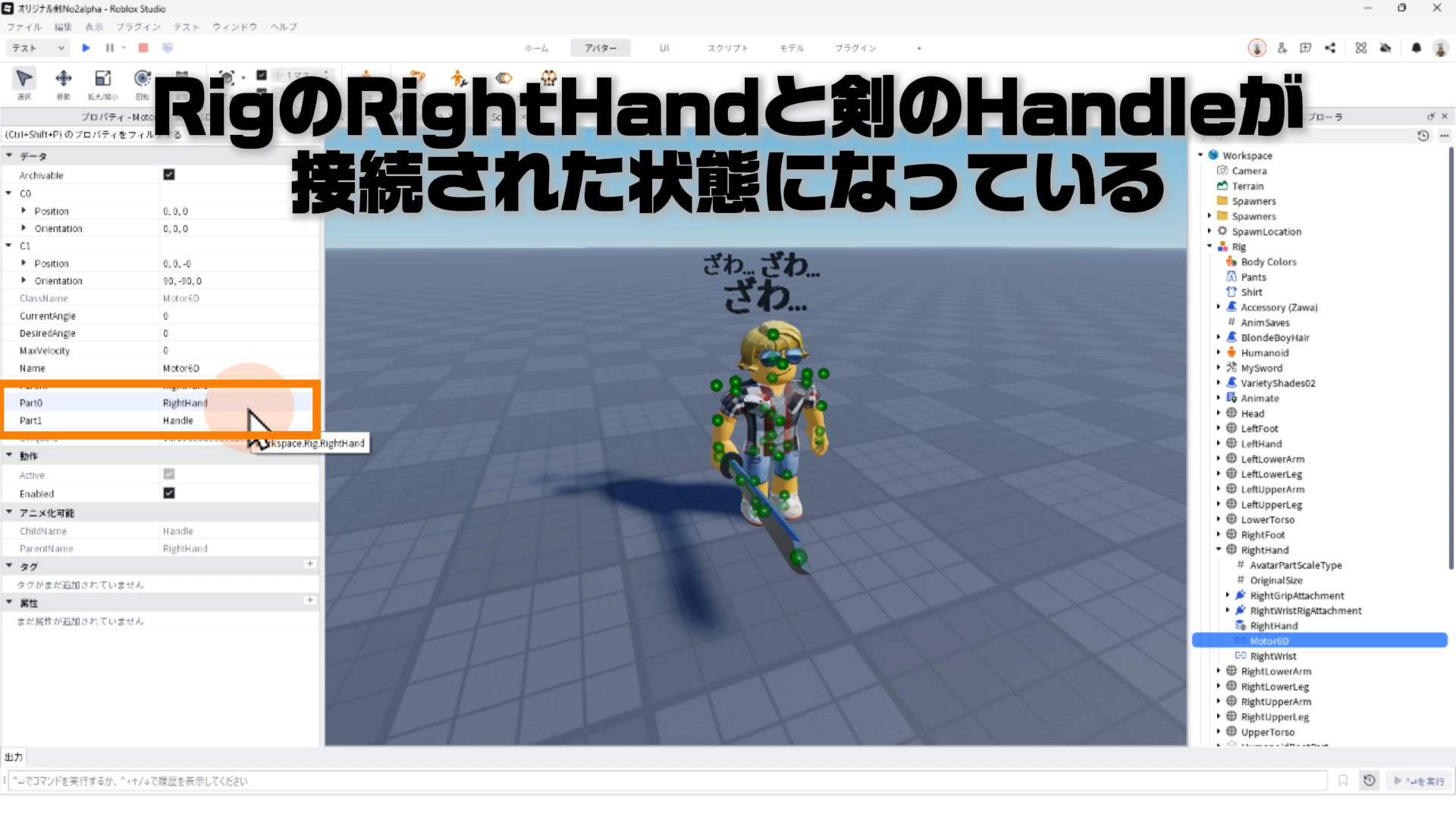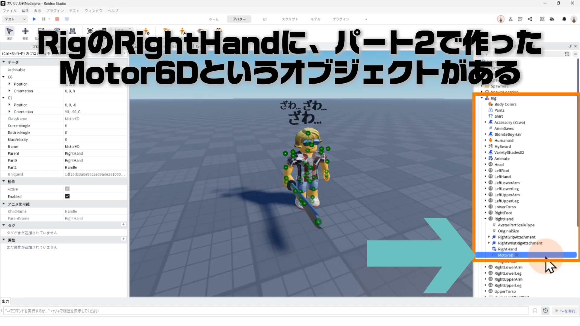 のRigのRightHandを見ると、パート2で作ったMotor6Dというオブジェクトがある