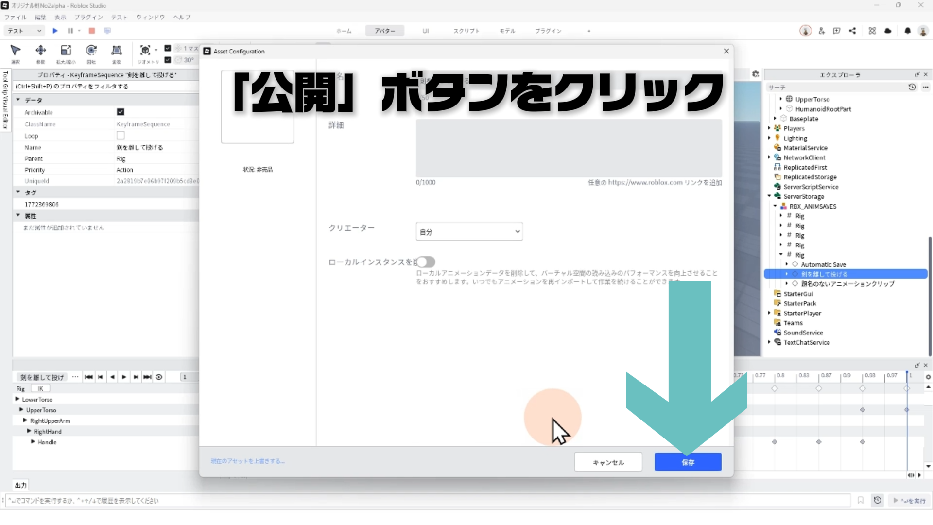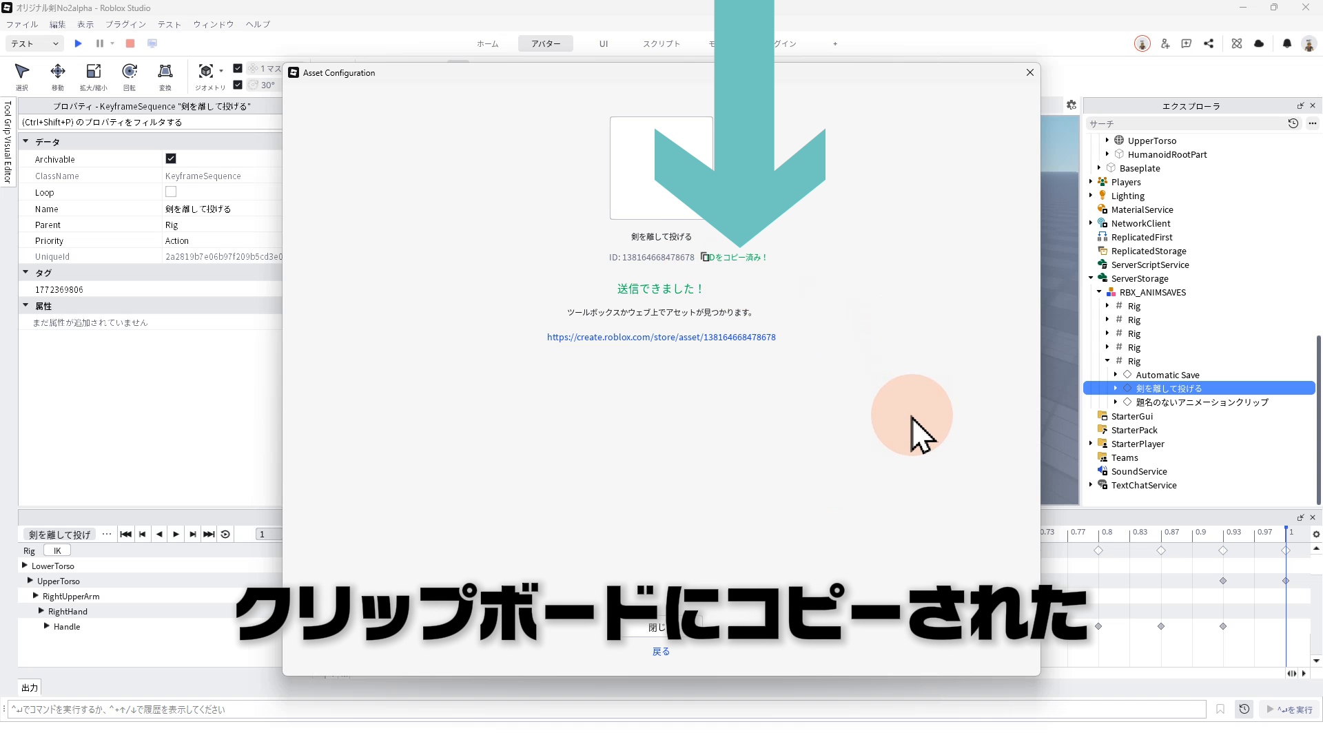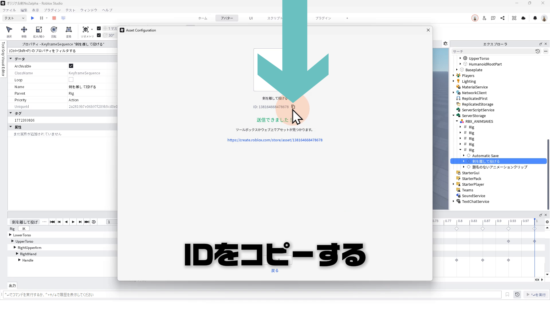 02:06 アニメーションのRobloxへ公開とIDコピー