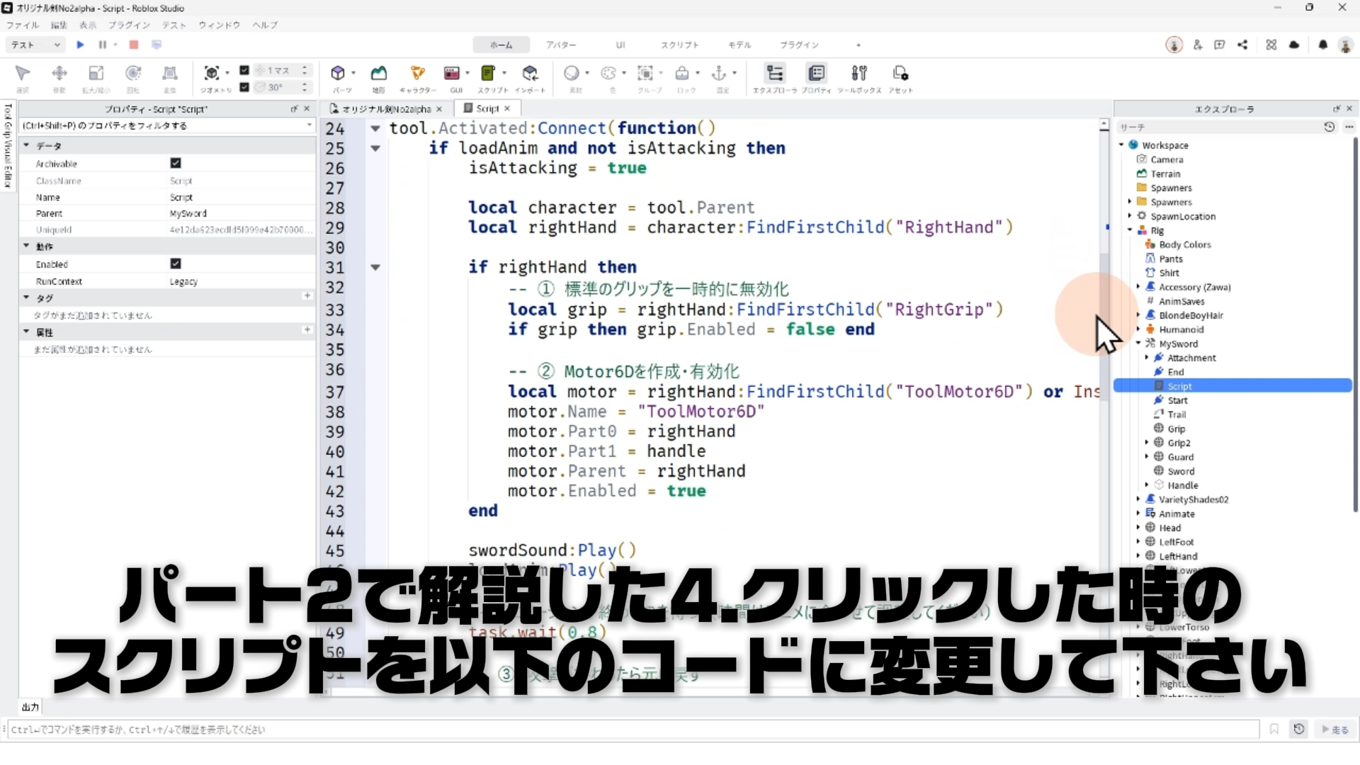4. スクリプトの書き換え(Motor6Dの切り替え処理)