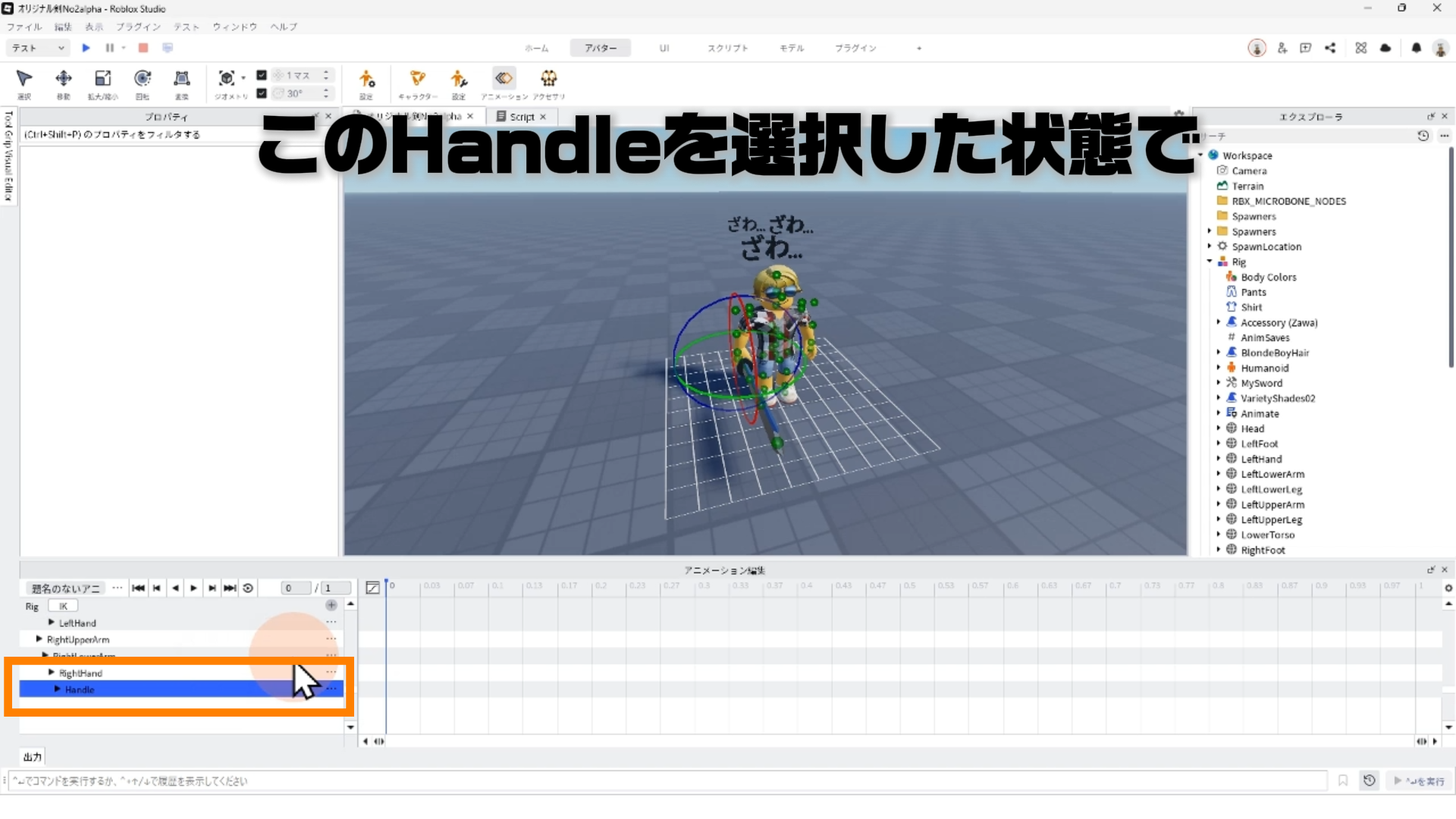 local handle = tool:WaitForChild("Handle") -- Sword内のHandleを参照