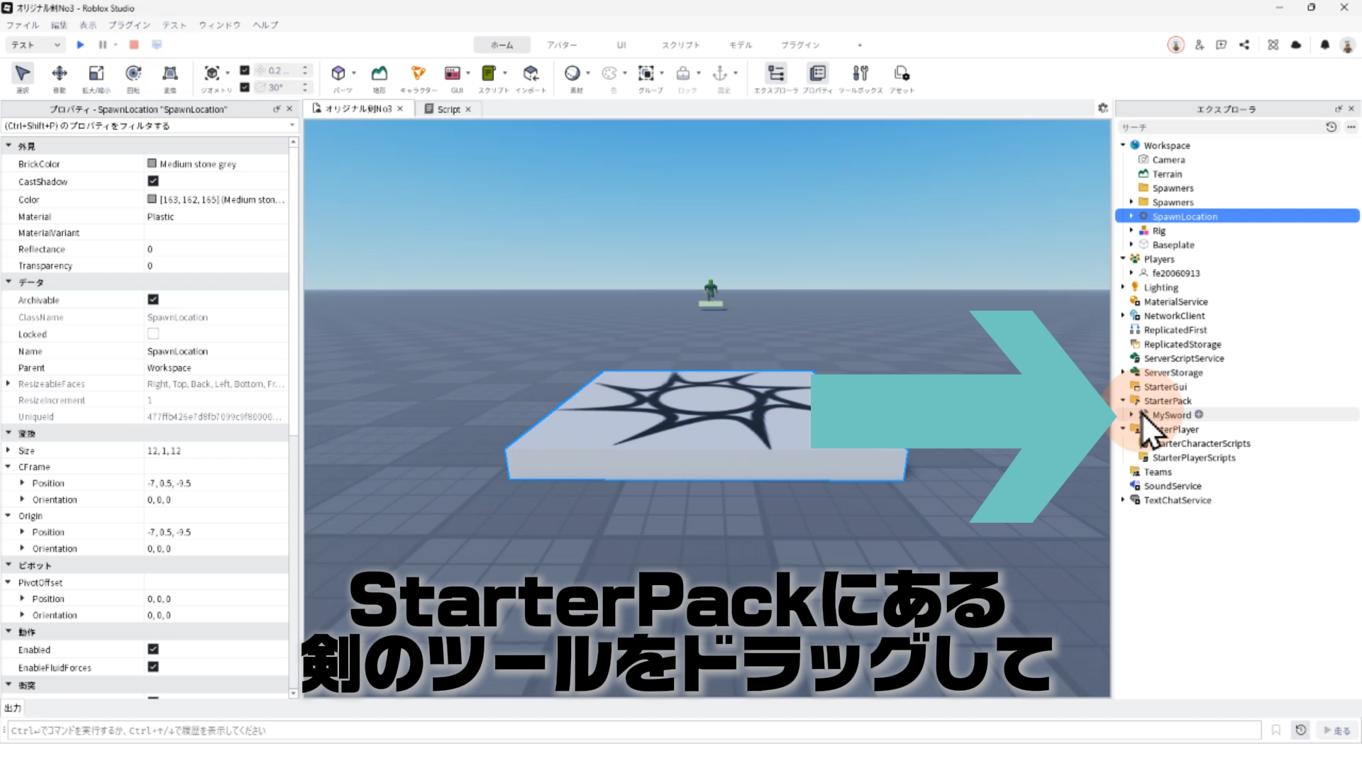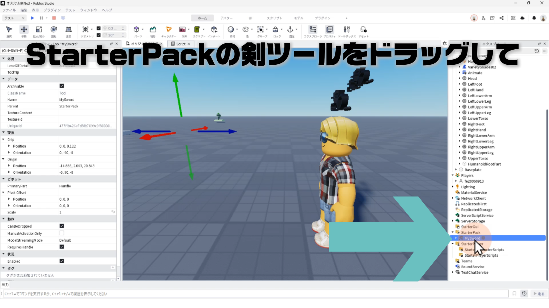 StarterPackにある剣のツールをドラッグして