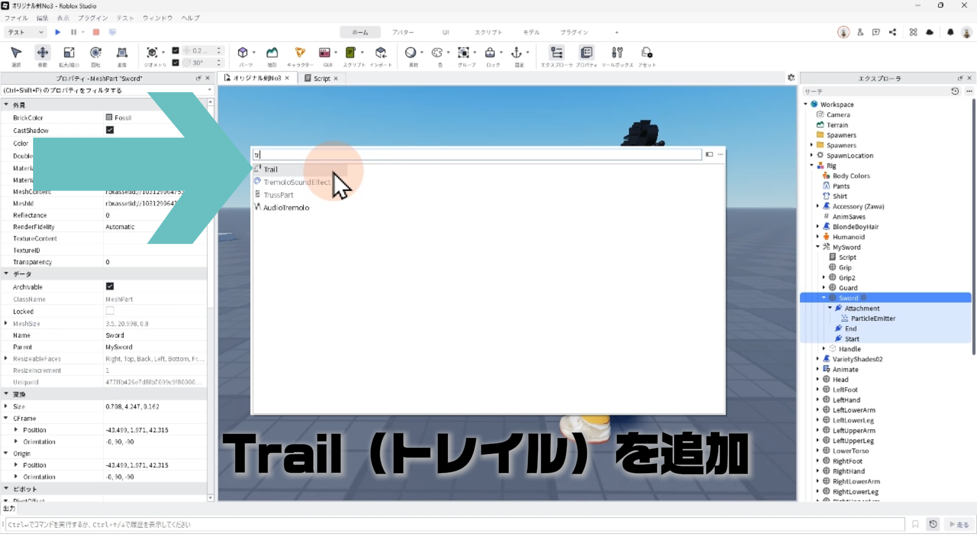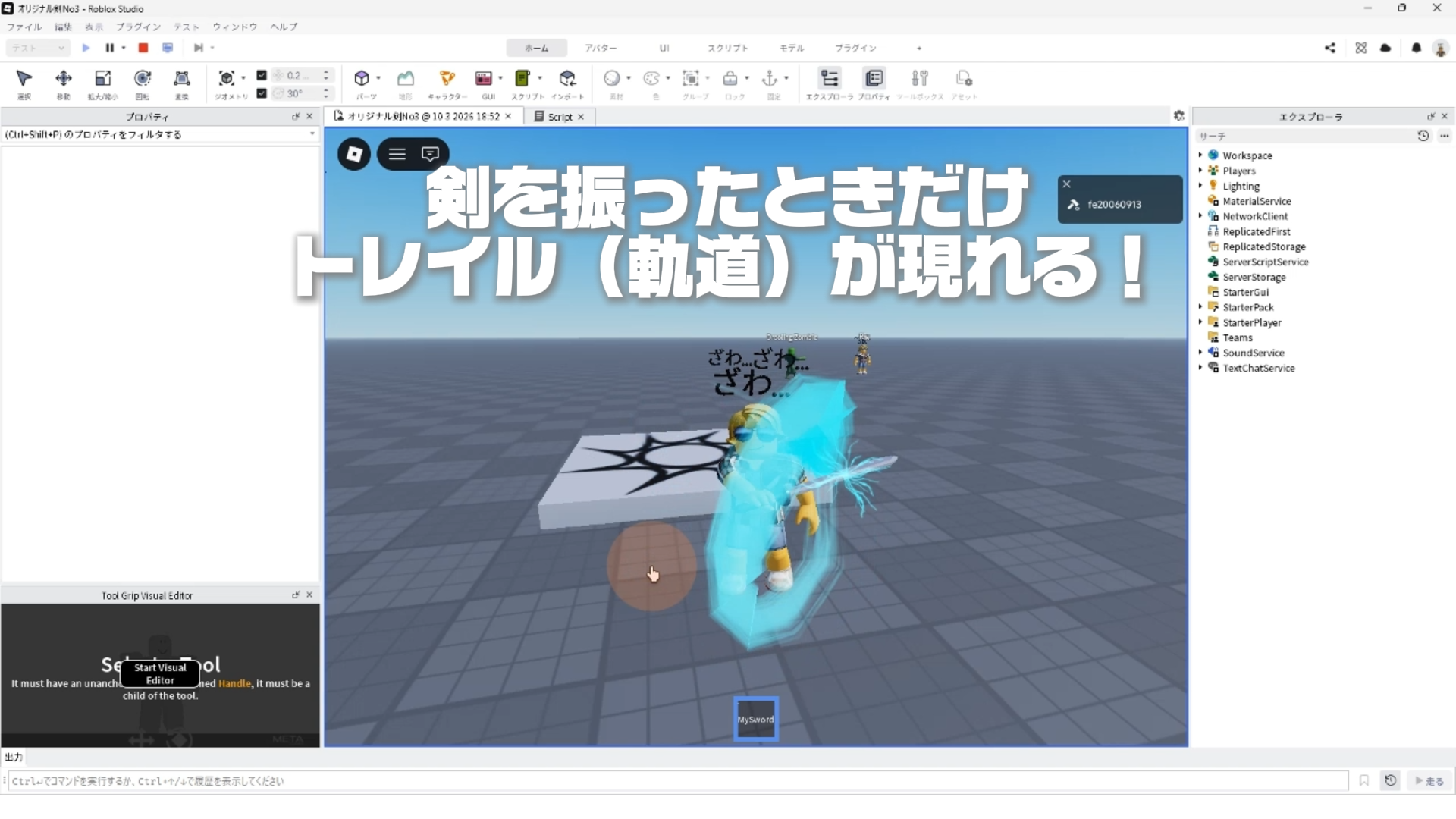 【Roblox Studio入門⑨】オリジナル剣を作ろう Part3!VFX(パーティクル・トレイル)、サウンドで剣を演出!