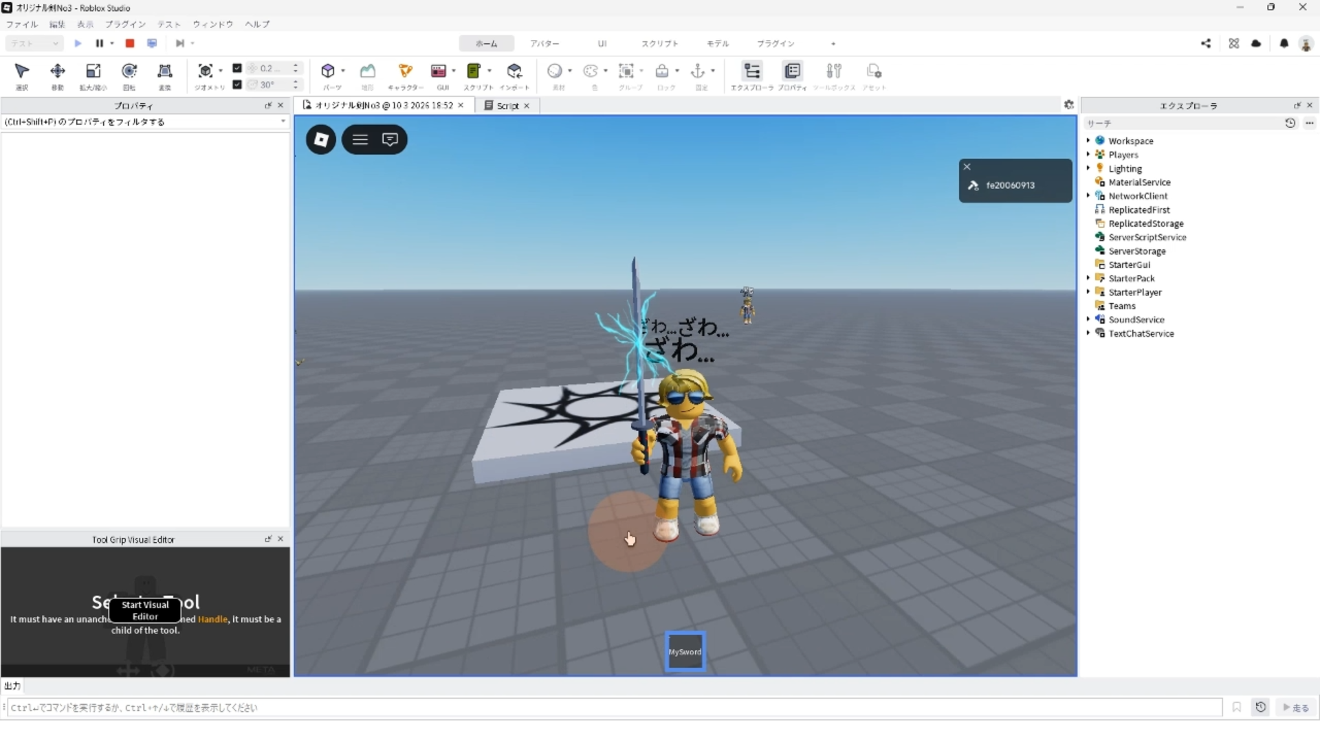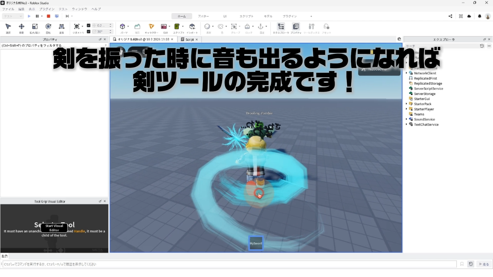 剣を振ると音も出るようになったら、剣ツールの完成!