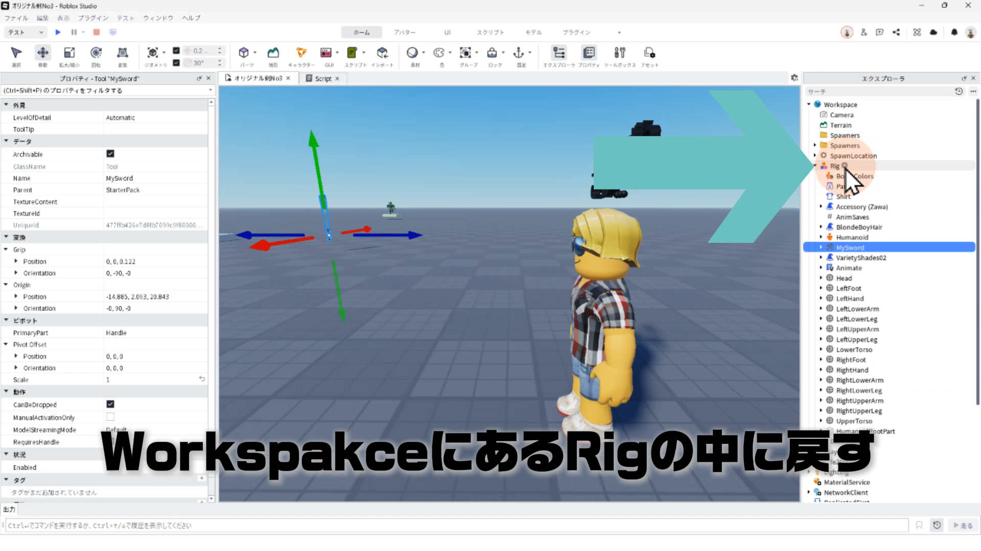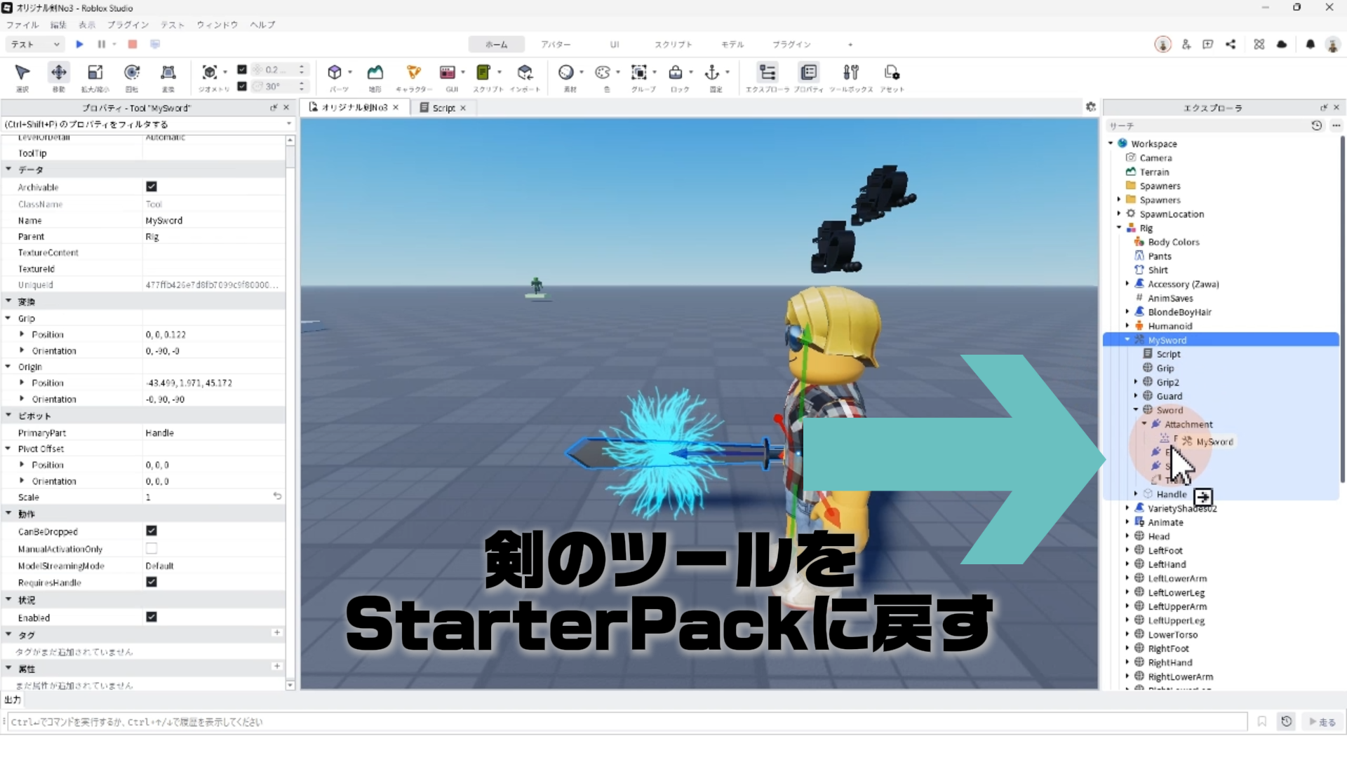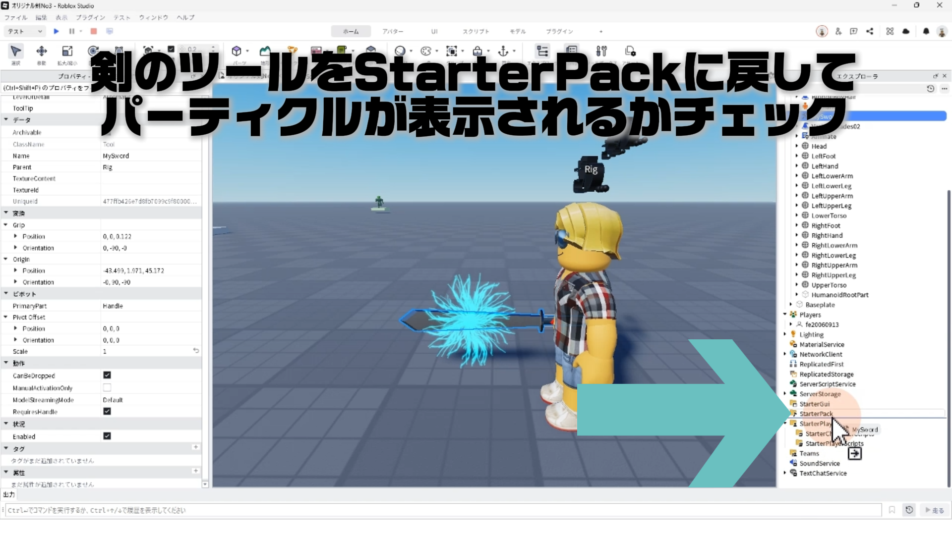 プロパティ設定のチェック:剣のツールをStarterPackに戻して