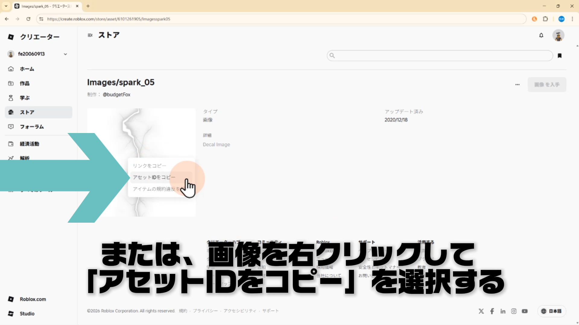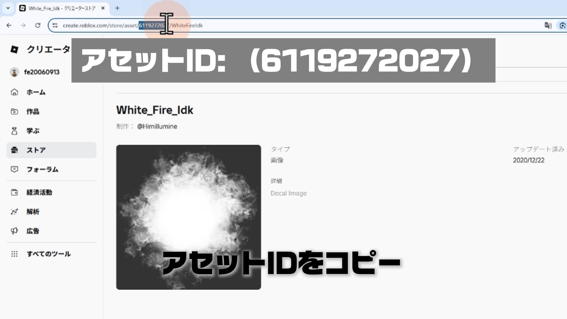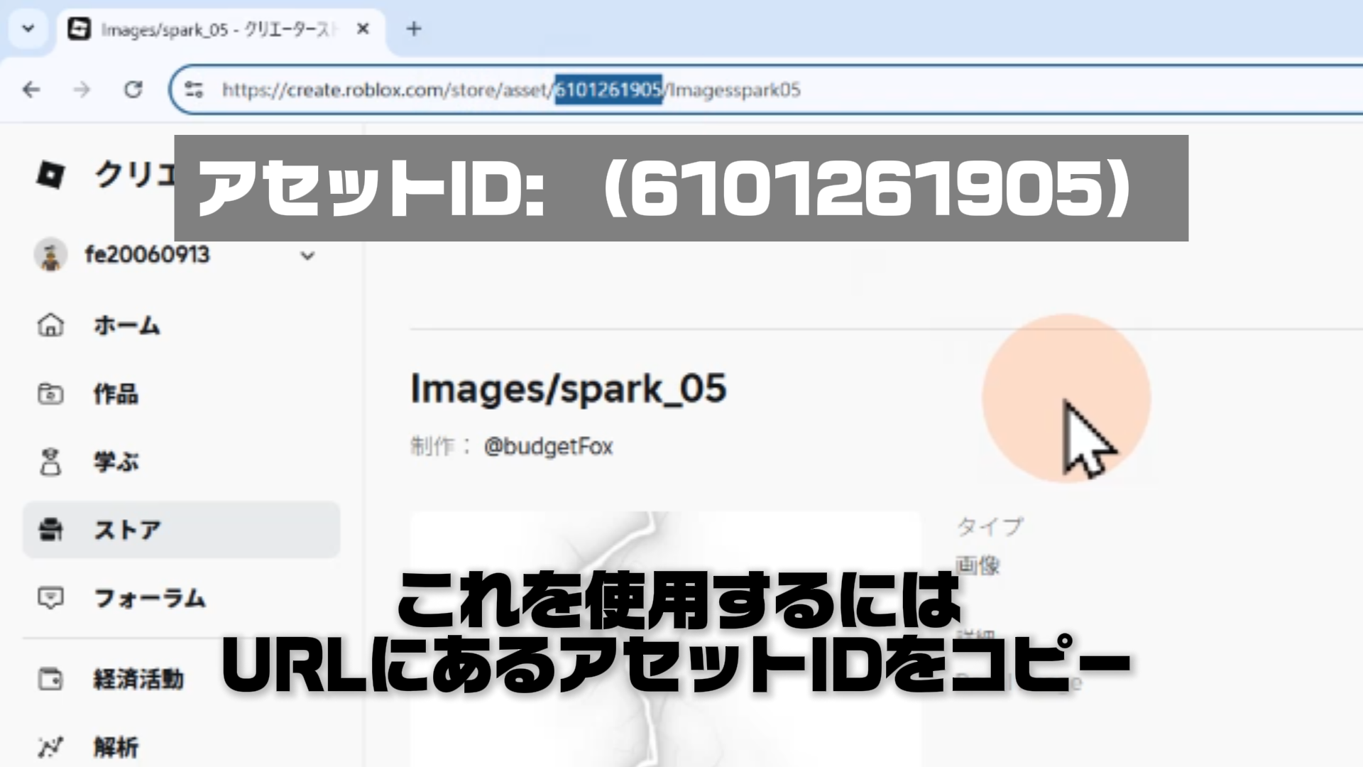 URLの欄をクリックし、Ctrl + V でアセットIDを貼り付ける