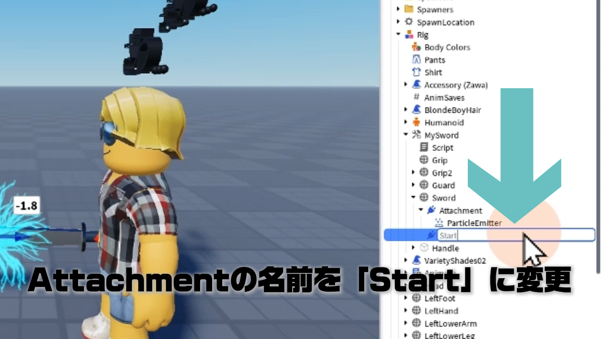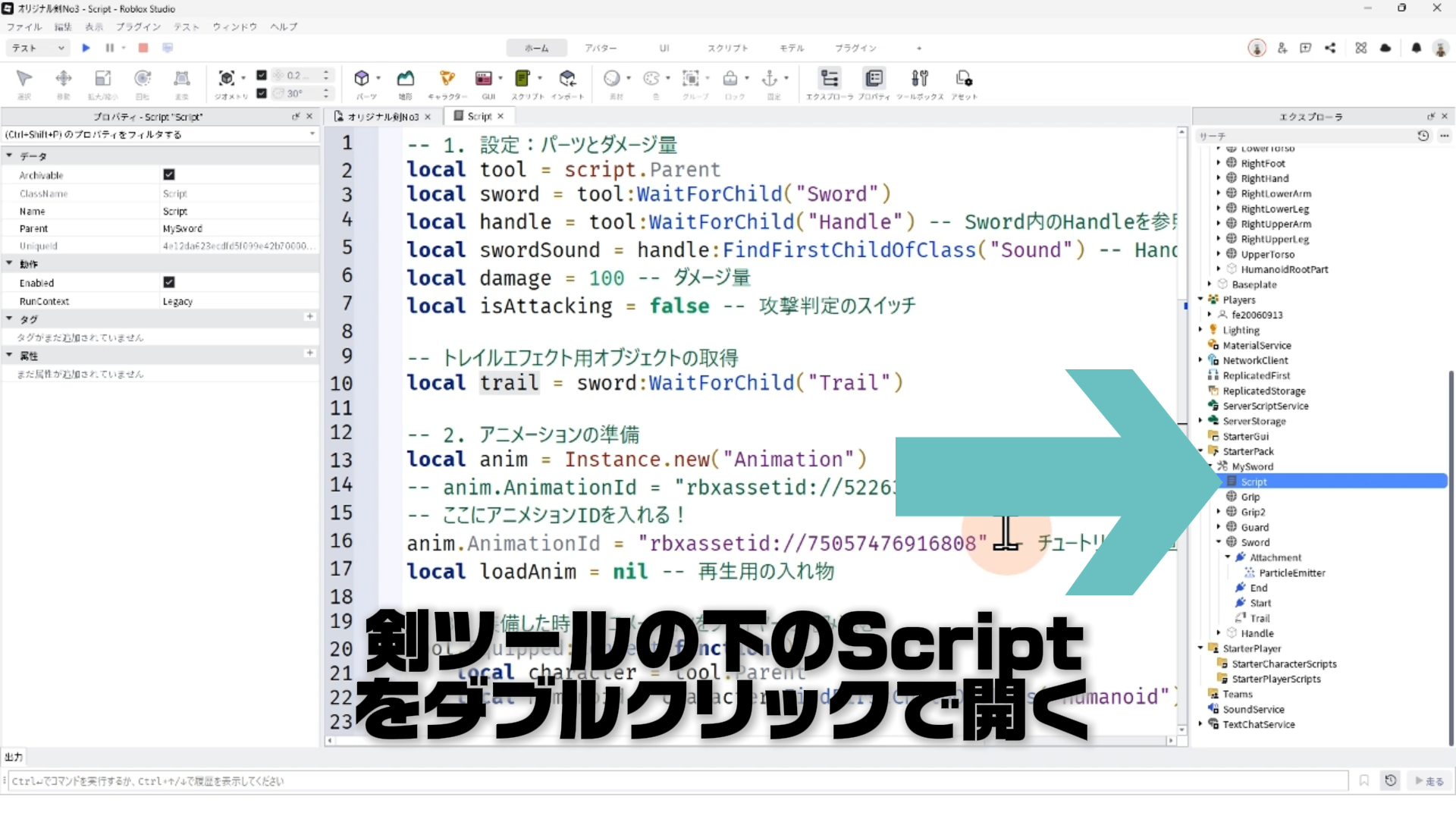 local handle = tool:WaitForChild("Handle") -- Sword内のHandleを参照