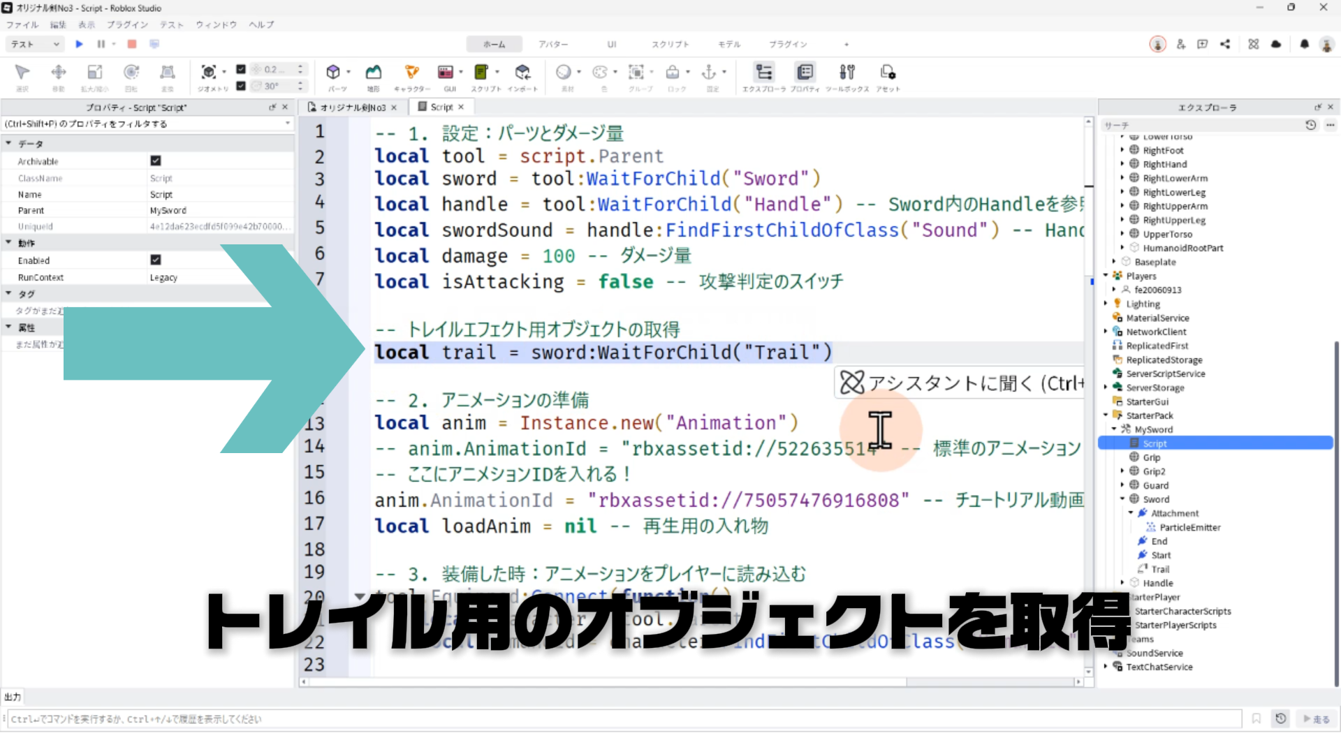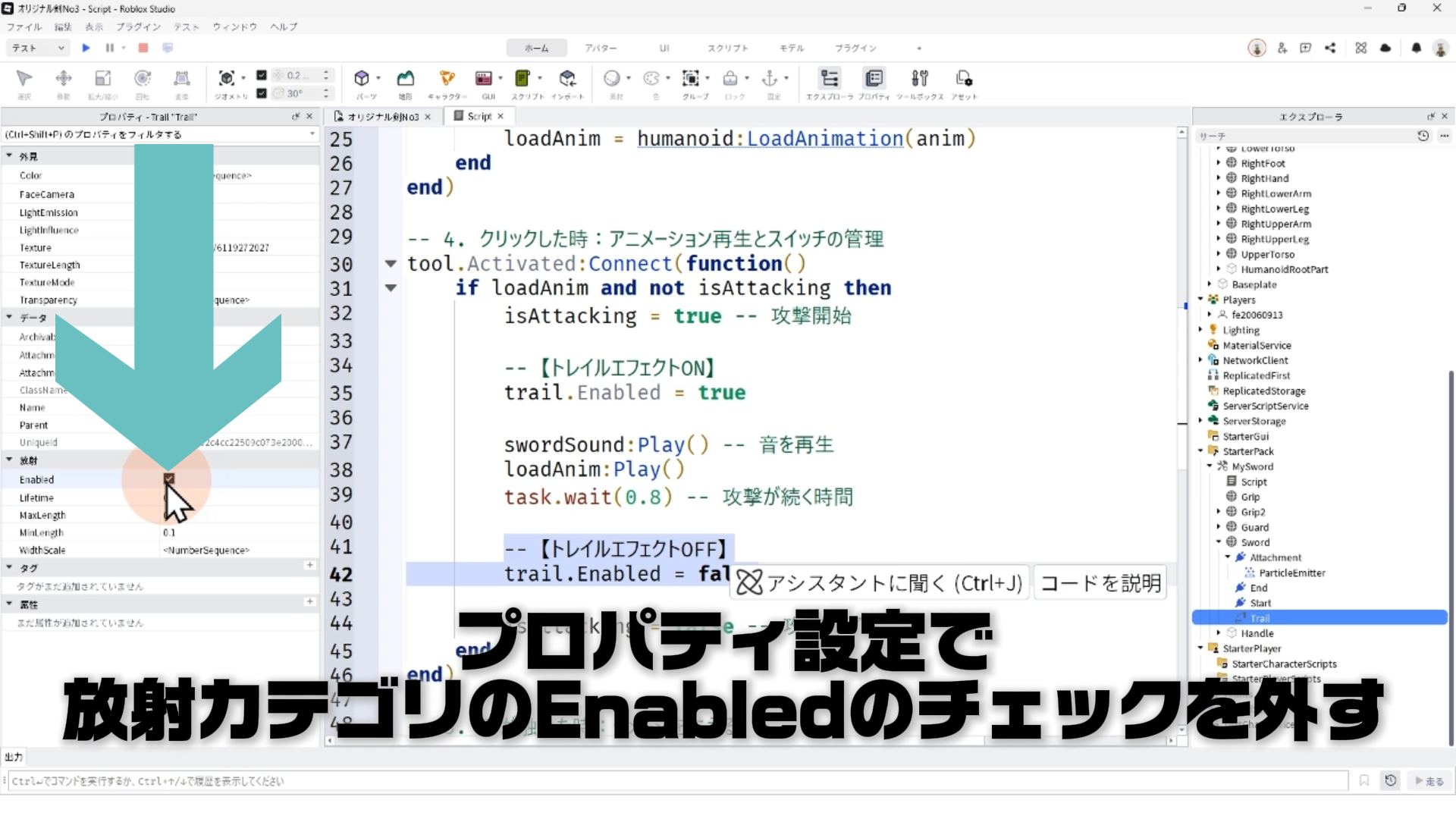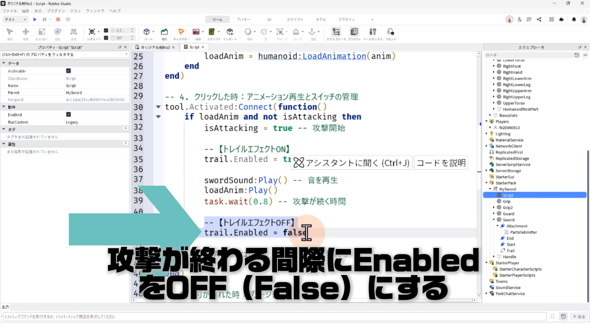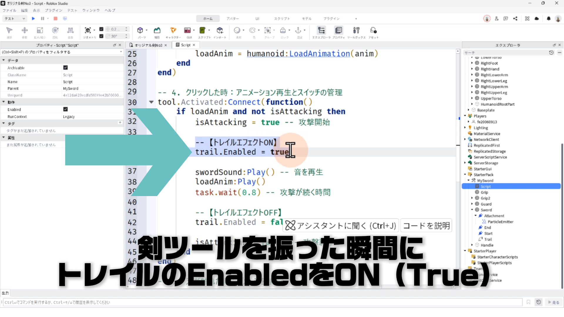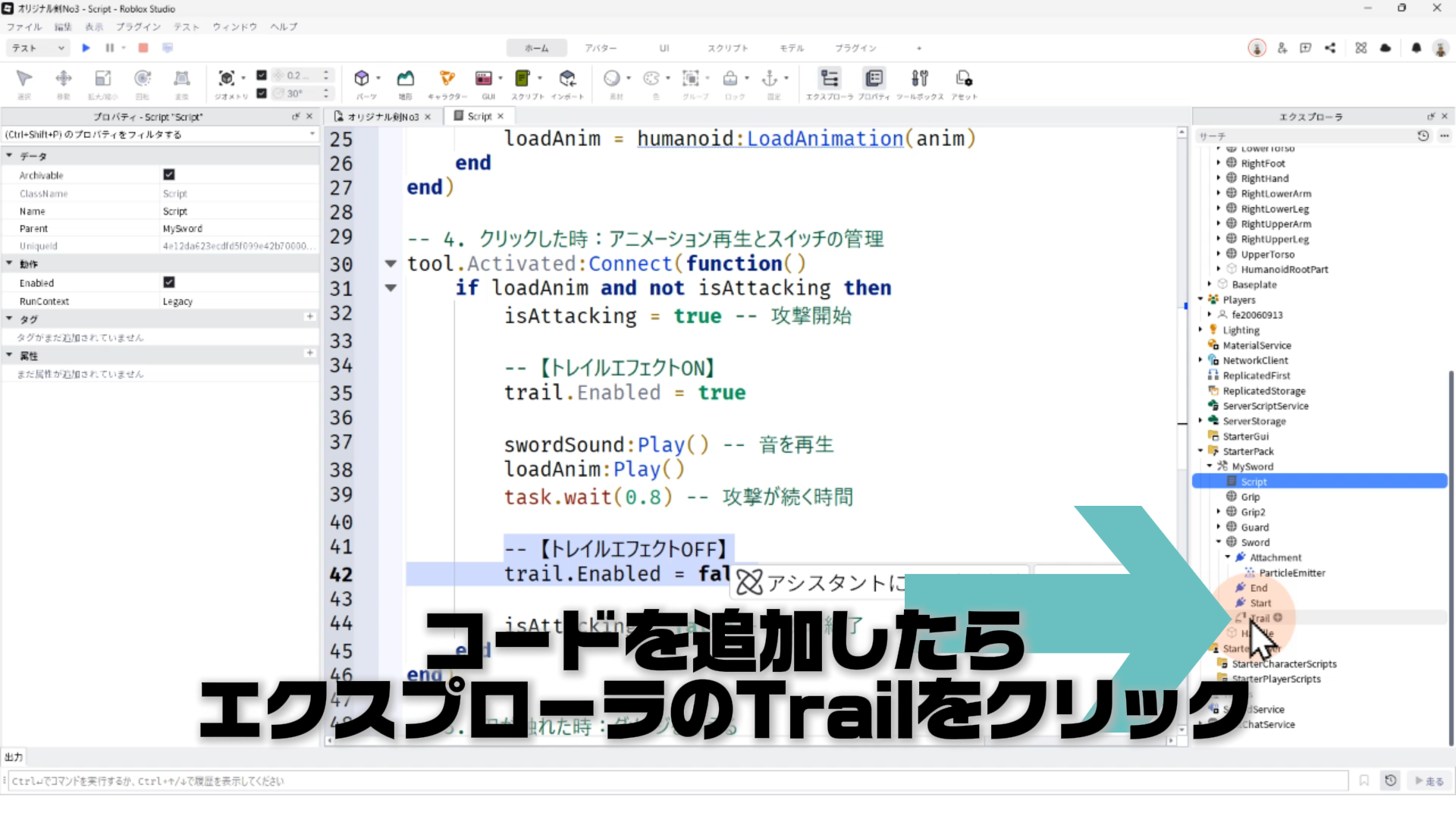 4. 剣を振ったときだけ、トレイルが表示されるようにスクリプトを修正する