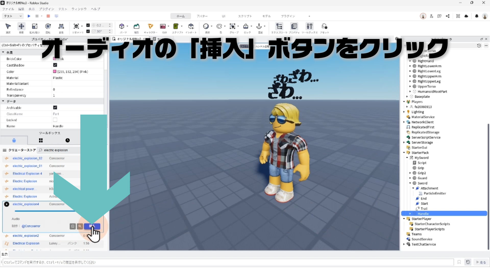 ※剣ツールのPrimaryPart(主パーツ)であるHandleパートに音を追加します。