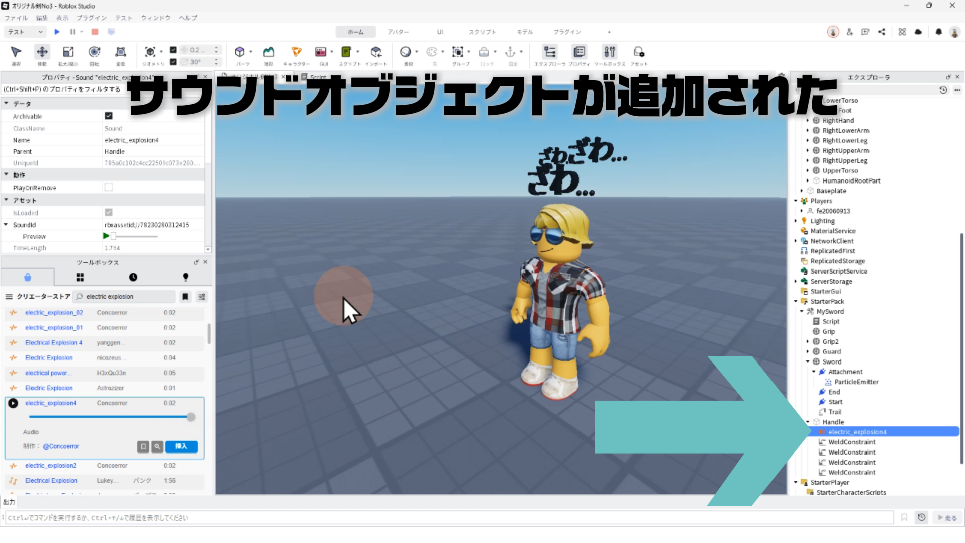 エクスプローラのSwordパーツの下にサウンドオブジェクトが追加される