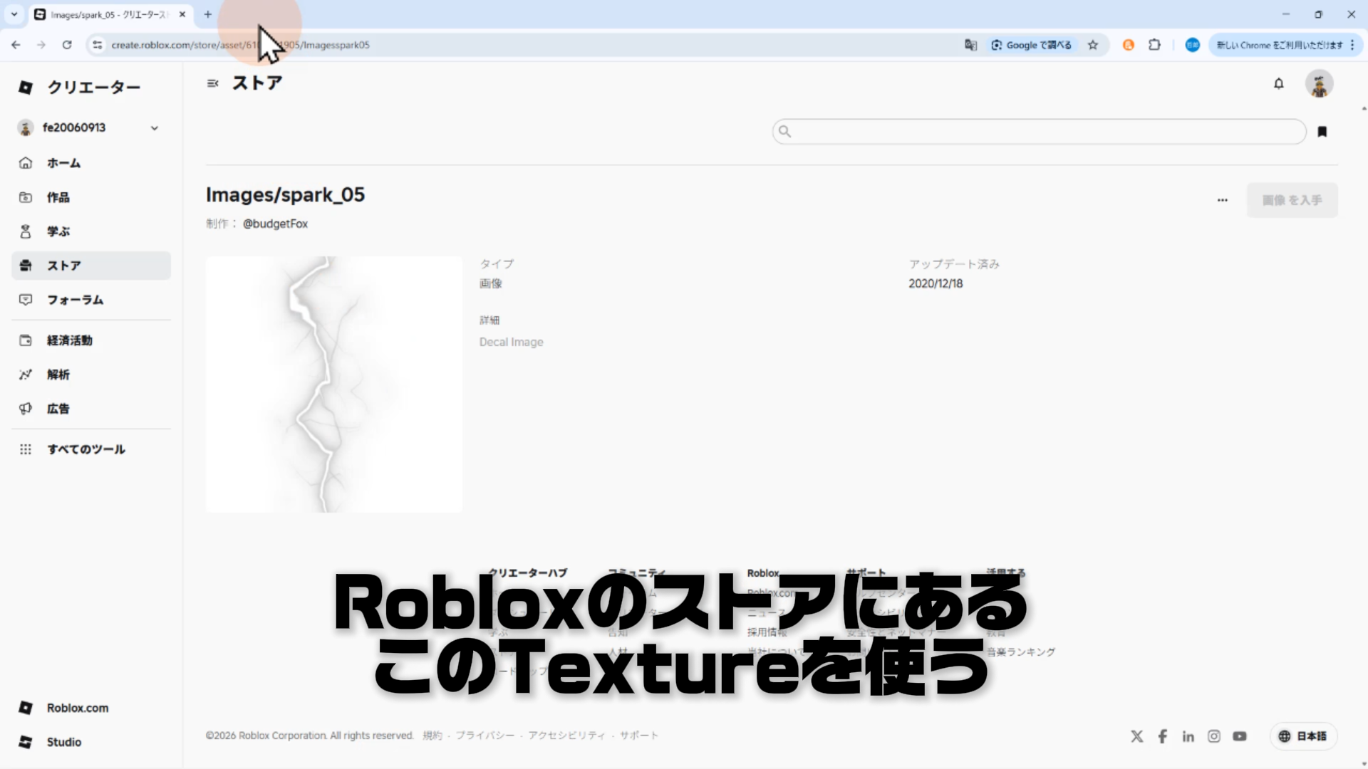 このTextureを使用するには、URLにあるアセットID(6101261905)をコピーするか