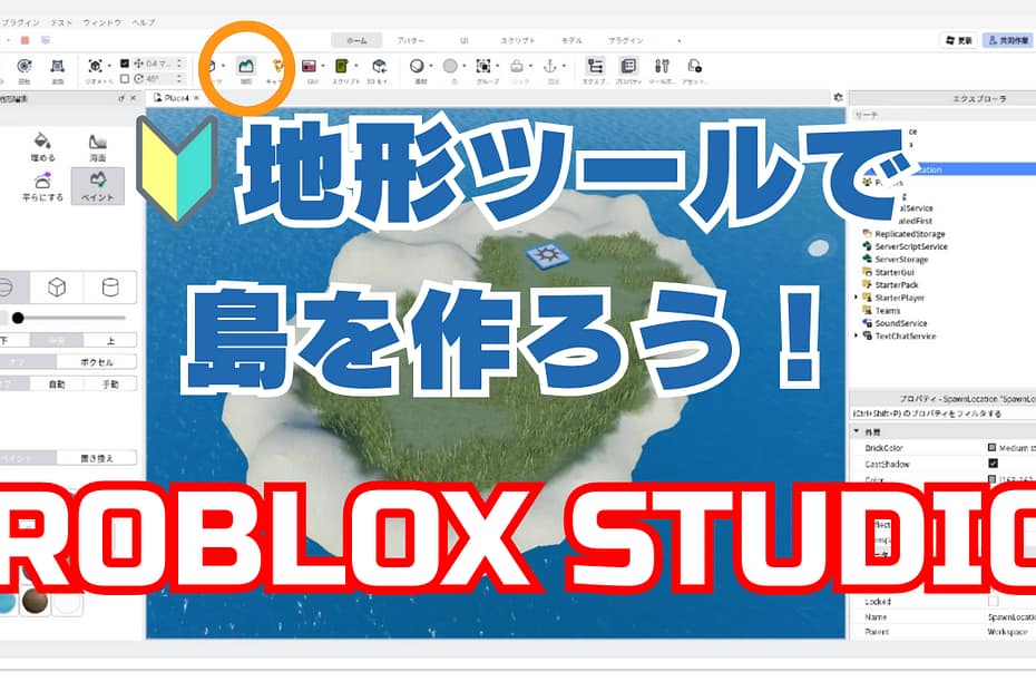Roblox Studioの地形ツール(Terrain Editor)だけでオリ… Read More »【🔰Roblox Studio入門③】Roblox Studioでオリジナルの島を作ろう|地形ツール完全ガイド
