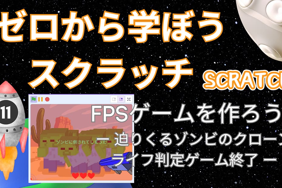 KIDSPROは、オンライン講座を02/07(土)、02/08(日)に実施します… Read More »【Scratch入門講座⑪】FPSゲームを作ろう!3回目最終回 / 全3回:ライフ判定によるゲーム終了、ライフ表示